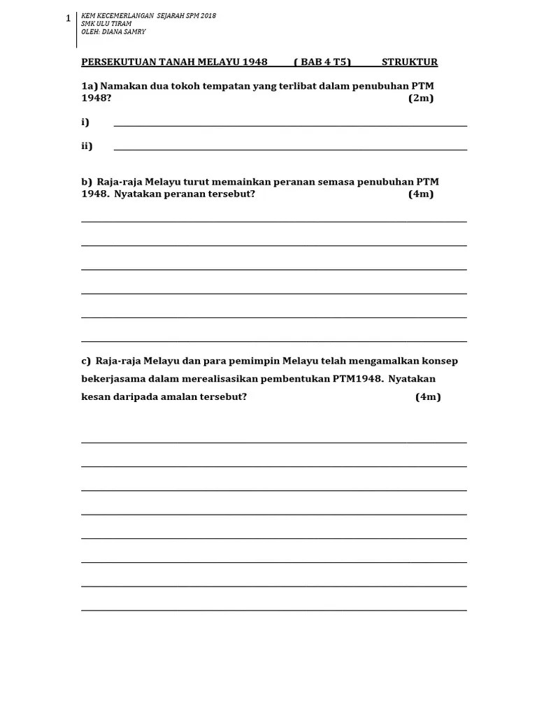 Malaya 1 2 1948 on twitter . Sejarah kertas 3, tema 11.